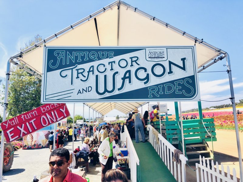 • Whether young or old, the wagon ride is a wonderful way to see the seemingly never-ending rows of flowers. Give your feet a rest and enjoy the breathtaking views as you roll along behind an antique tractor. You can enjoy listening to the history of the Flower Fields through the speakers on board. This was perfect for my grandma to be able to see all of the Flower Fields without needing to walk the entire premises. The children on board seemed to enjoy it just as much as we bounced along the dirt road.